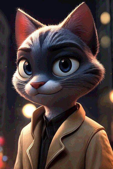 In this 1930's Noir style story, an anthro cat detective named Dean Whiskers, casts shadows over sharp, inquisitive eyes. This cat is on the prowl for clues in the dimly lit, rain-slicked streets of a city that never sleeps. He lives in a city called " Meowtropolis". Whiskers' backstory is as intriguing as his cases. He was an orphan, raised in the back alleys by a clowder of streetwise cats and foxes. He learned the ways of the city from the whiskers up, developing a network of informants and allies among the city's many strays and gangsters. His natural curiosity and cunning made him a natural at solving the unsolvable, and soon, his reputation grew.