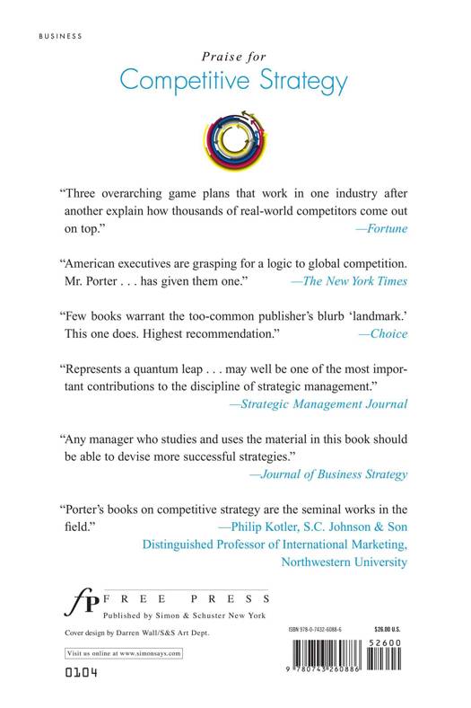 Now nearing its 60th printing in English and translated into nineteen languages, Michael E. Porter's COMPETITIVE STRATEGY has transformed the theory, practice and teaching of business strategy throughout the world.