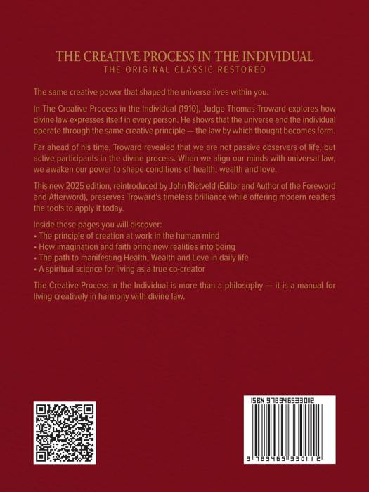 First published in 1910, The Creative Process in the Individual explores how the same law that brought the universe into being operates in every human being. Troward reveals that the divine creative process is not abstract theology, but a living principle — the very way thought shapes reality.