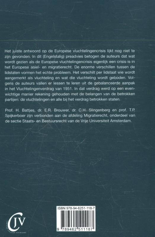Het juiste antwoord op de Europese vluchtelingencrisis lijkt nog niet te zijn gevonden. In dit (Engelstalig) preadvies betogen de auteurs dat wat wordt gezien als de Europese vluchtelingencrisis eigenlijk een crisis is in het Europese asiel- en migratierecht. De enorme verschillen tussen de lidstaten vormen het echte probleem. Het verschilt per lidstaat wie wordt aangemerkt als vluchteling en wat die vluchteling wordt geboden. Volgens de auteurs vallen er lessen te leren uit de gebalanceerde aanpak in het Vluchtelingenverdrag van 1951. In dat verdrag werd op een evenwichtige manier rekening gehouden met de belangen van de betrokken partijen: de vluchtelingen en alle bij het verdrag betrokken staten.