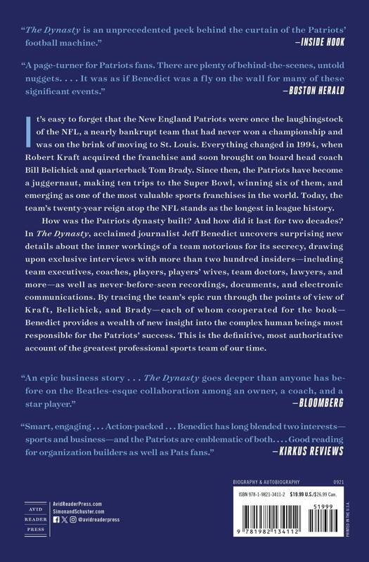 The Dynasty, acclaimed journalist Jeff Benedict provides richly reported answers in a sweeping account based on exclusive interviews with more than two hundred insiders--including team executives, coaches, players, players' wives, team doctors, lawyers, and more--as well as never-before-seen recordings, documents, and electronic communications.