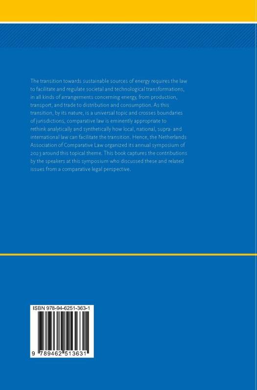 The transition towards sustainable sources of energy requires the law to facilitate and regulate societal and technological transformations, in all kinds of arrangements concerning energy, from production, transport, and trade to distribution and consumption. As this transition, by its nature, is a universal topic and crosses boundaries of jurisdictions, comparative law is eminently appropriate to rethink analytically and synthetically how local, national, supra- and international law can facilitate the transition. Hence, the Netherlands Association of Comparative Law organized its annual symposium of 2023 around this topical theme. This book captures the contributions by the speakers at this symposium who discussed these and related issues from a comparative legal perspective.