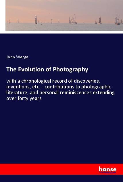 The Evolution of Photography - with a chronological record of discoveries, inventions, etc. - contributions to photographic literature, and personal reminiscences extending over forty years is an unchanged, high-quality reprint of the original edition of 1890. Hansebooks is editor of the literature on different topic areas such as research and science, travel and expeditions, cooking and nutrition, medicine, and other genres. As a publisher we focus on the preservation of historical literature. Many works of historical writers and scientists are available today as antiques only. Hansebooks newly publishes these books and contributes to the preservation of literature which has become rare and historical knowledge for the future.