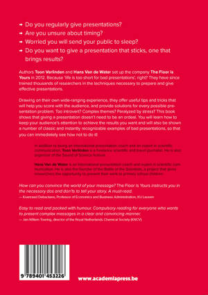 Drawing on their own wide-ranging experience, the authors offer useful tips and tricks that will help you score with the audience and provide solutions for every possible presentation problem. Too introverted? Complex themes? Paralyzed by stress? This book shows that giving a presentation doesn't need to be an ordeal. You will learn how to keep your audience's attention to achieve the results you want and will also be shown a number of classic and instantly recognizable examples of bad presentations, so that you can immediately see how not to do it!