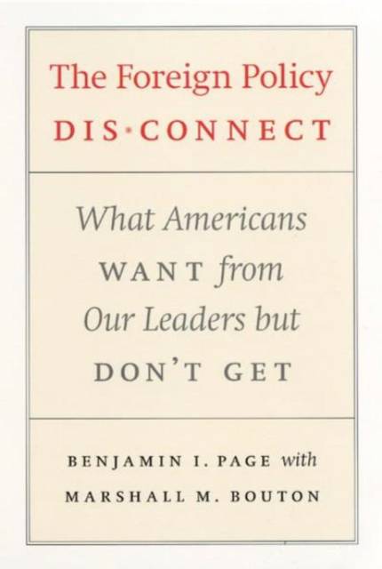 With world affairs so troubled, what kind of foreign policy should the United States pursue? Benjamin Page and Marshall Bouton look for answers in a surprising place: among the American people. Drawing on a series of national surveys conducted between 1974 and 2004, Page and Bouton reveal that--contrary to conventional wisdom--Americans generally hold durable, coherent, and sensible opinions about foreign policy. Nonetheless, their opinions often stand in opposition to those of policymakers, usually because of different interests and values, rather than superior wisdom among the elite. The Foreign Policy Disconnect argues that these gaps between leaders and the public are harmful, and that by using public opinion as a guideline policymakers could craft a more effective, sustainable, and democratic foreign policy.