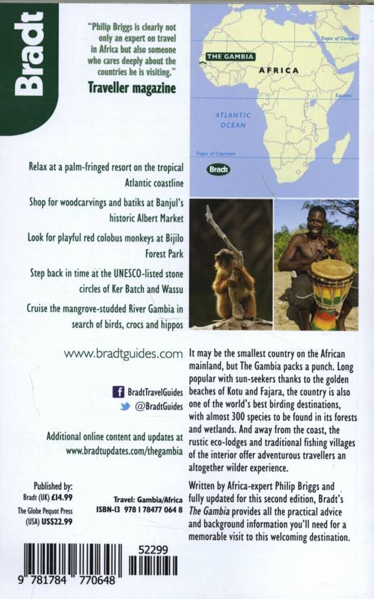 With 16 well-researched chapters and 26 useful maps, this new thoroughly updated second edition of Bradt's The Gambia remains the most comprehensive guide available in any language to what is the smallest country on mainland Africa. Significant development has taken place in recent years and this new edition offers all the latest updates, including new restaurants and hotels, detailed coverage of the many new eco lodges and camps that have sprung up, information on festivals, music workshops and opportunities to experience the unique local culture, and informed advice about birdwatching possibilities in a country very popular with first-time birders to Africa. As well as encompassing the popular coastal resorts, the guide also provides all the detailed information required to explore the relatively undeveloped interior, making it ideal for both visitors on organised packaged holidays and independent travellers alike. Bradt's The Gambia reveals all the background and practical information needed to explore arguably Africa's most welcoming and safest country with its plethora of beach resorts - catering to all tastes and budgets - that line the 80km stretch of tropical coastline running from the capital Banjul to the remote southern border. Small in size but rich in African character, The Gambia offers perhaps the closest English-speaking 'winter sun' destination from Europe. Justifiably popular with birdwatchers, the lush mangrove- and jungle-fringed river is also home to crocodiles, hippos, chimpanzees and a variety of monkeys. Historic attractions include the mysterious megalithic stone circles at Wassu and Ker Batch, and the fortified James Island and former slave-trading village of Juffureh (to where Alex Haley traced his ancestry in the book and TV programme Roots) - all of which form part of the country's two UNESCO World Heritage Sites and offer rich pickings to moderately adventurous travellers. Bradt's The Gambia is the perfect companion for discovering this safe, welcoming and decidedly tourist-friendly English-speaking country which makes for an ideal short-stay introduction to the unique atmosphere of Africa.