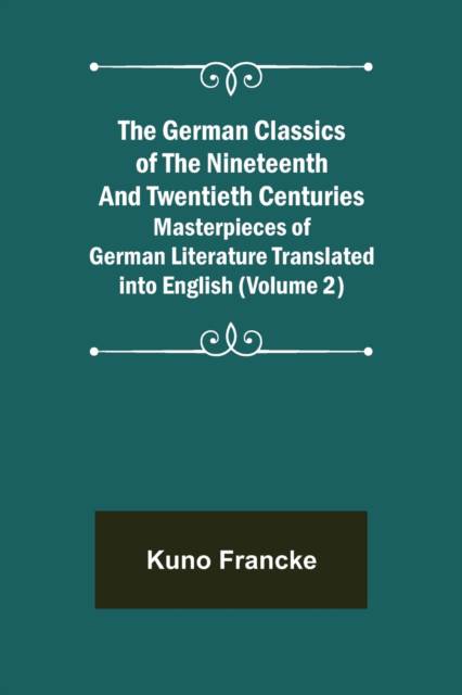 The book "" The German Classics of the Nineteenth and Twentieth Centuries (Volume 2) Masterpieces of German Literature Translated into English "", has been considered important throughout the human history, and so that this work is never forgotten we have made efforts in its preservation by republishing this book in a modern format for present and future generations. This whole book has been reformatted, retyped and designed. These books are not made of scanned copies and hence the text is clear and readable.