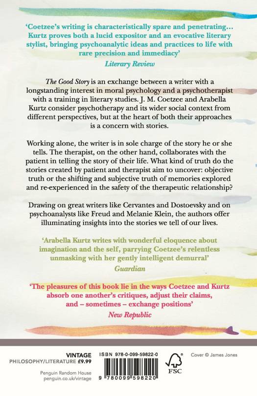 The Good Story is an exchange between a writer with a longstanding interest in moral psychology and a psychotherapist with a training in literary studies.
