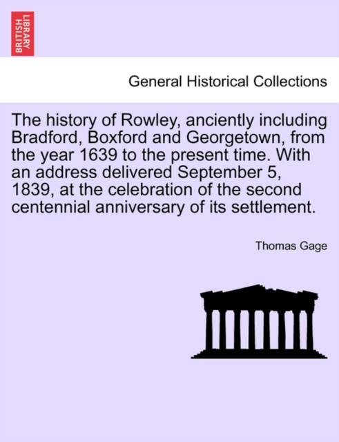 Title: The history of Rowley, anciently including Bradford, Boxford and Georgetown, from the year 1639 to the present time. With an address delivered September 5, 1839, at the celebration of the second centennial anniversary of its settlement. By Rev. J. Bradford.