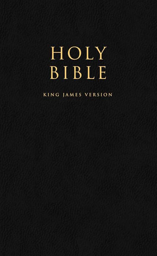 The full text of the Popular size King James or Authorized Version Bible, in a straightforward black imitation leather hardback binding.