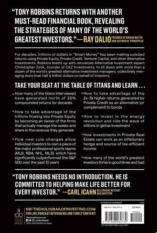 Tony Robbins returns with the final book in his financial freedom trilogy by unveiling the power of alternative investments. Robbins, and renowned investor Christopher Zook, take you on a journey to interview a dozen of the world’s most successful investors in private equity, private credit, private real estate, and venture capital. They share their favorite strategies and insights in this practical guidebook.