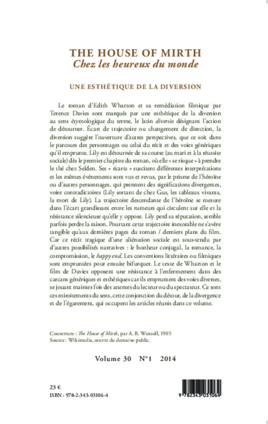 Compilation d'articles et de critiques littéraires, cet ouvrage propose une lecture combinée du roman d'Edith Wharton et de sa remédiation filmique par Terence Davies. Le texte de Wharton et le film de Davies opposent une résistance à l'enfermement dans des carcans génériques et esthétiques, se jouant maintes fois des attentes du lecteur et du spectateur. Ce sont ces miroitements du sens, cette conjonction du détour, de la divergence et de l'égarement qui occupent ces articles.