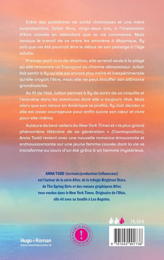 Anna Todd, auteure de best-sellers du New York Times et « le plus grand phénomène littéraire de sa génération » (Cosmopolitan), revient avec une nouvelle romance émouvante et enthousiasmante sur une jeune femme couvée dont la vie se transforme au cours d'un été à Majorque grâce à un mystérieux habitant.