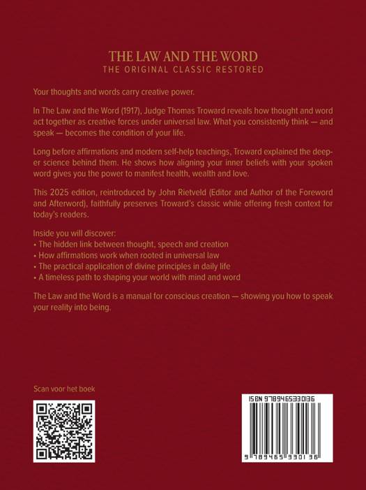 First published in 1917, The Law and the Word explores the profound relationship between thought, speech and universal law. Troward reveals that the creative process does not stop with thought alone — it is the spoken word, charged with belief, that sets spiritual law into motion.