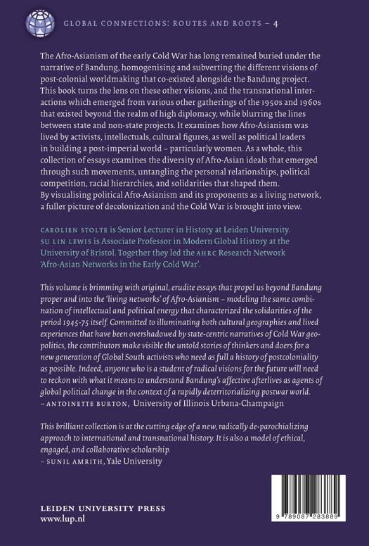 The Afro-Asianism of the early Cold War has long remained buried under the narrative of Bandung, homogenising and subverting the different visions of post-colonial worldmaking that co-existed alongside the Bandung project. This book turns the lens on these other visions, and the transnational interactions which emerged from various other gatherings of the 1950s and 1960s that existed beyond the realm of high diplomacy, while blurring the lines between state and non-state projects. It examines how Afro-Asianism was lived by activists, intellectuals, cultural figures, as well as political leaders in building a post-imperial world - particularly women. As a whole, this collection of essays examines the diversity of Afro-Asian ideals that emerged through such movements, untangling the personal relationships, political competition, racial hierarchies, and solidarities that shaped them. By visualising political Afro-Asianism and its proponents as a living network, a fuller picture of decolonization and the Cold War is brought into view.