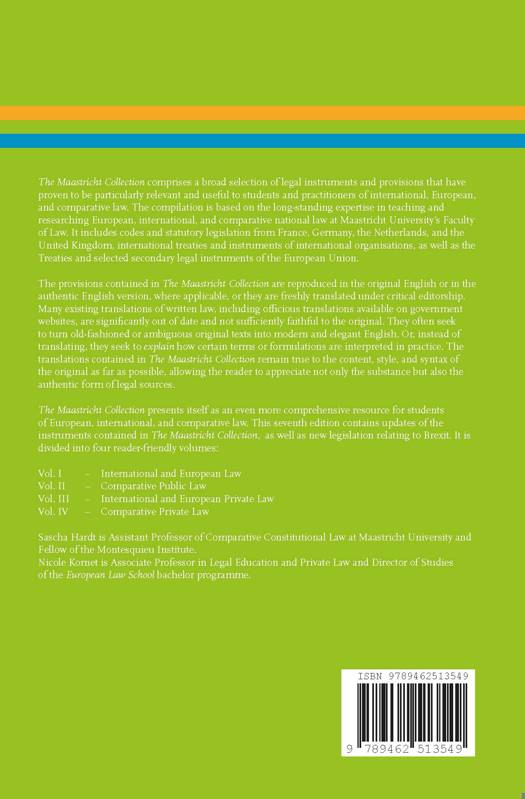 The Maastricht Collection presents itself as an even more comprehensive resource for students of European, international, and comparative law. This seventh edition contains updates of the instruments contained in The Maastricht Collection, as well as new legislation relating to Brexit. It is divided into four reader-friendly volumes: