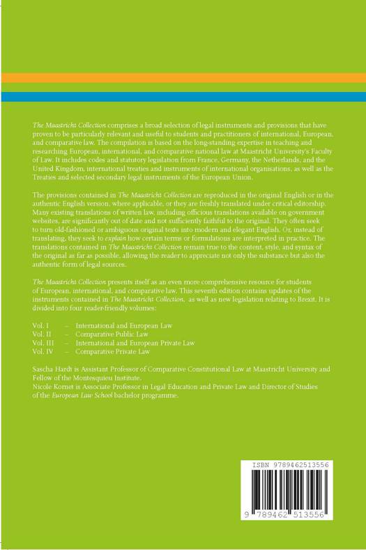 The Maastricht Collection presents itself as an even more comprehensive resource for students of European, international, and comparative law. This seventh edition contains updates of the instruments contained in The Maastricht Collection, as well as new legislation relating to Brexit. It is divided into four reader-friendly volumes: