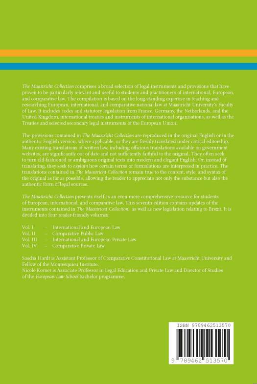 The Maastricht Collection presents itself as an even more comprehensive resource for students of European, international, and comparative law. This seventh edition contains updates of the instruments contained in The Maastricht Collection, as well as new legislation relating to Brexit. It is divided into four reader-friendly volumes: