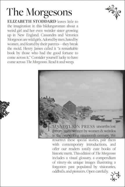 Cassandra and Veronica Morgeson are wild girls. Adored by men, hated by women and feared by their parents--they break the mold. Veronica refuses to leave the family hearth or look at the ocean. Cassandra travels from one house to another around Massachusetts, breaking hearts and sending men to their deaths wherever she goes. She narrates it all in a bold voice that will surprise and shock even those most familiar with 19th-century literature. Henry James called The Morgesons "a remarkable book by those who had the good fortune to come across it." As with all of Mandylion's bespoke publications, this new edition of Stoddard's first novel includes a visual glossary that illuminates the social conventions and restrictions of the 19th century.