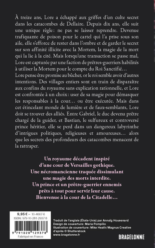 Mais lorsqu'une transaction se passe mal, Lore est capturée par la Presque Mort, une faction de prêtres-guerriers habilités à utiliser la Mortem pour le compte du Roi Sanctifié... Lore pense être promise au bûcher, or le roi semble avoir d'autres intentions. Des villages entiers sont en train de disparaître aux confins du royaume sans explication rationnelle, et Lore est confrontée à un choix : user de sa magie pour enquêter et démasquer les responsables à la cour de la Citadelle... ou être exécutée.