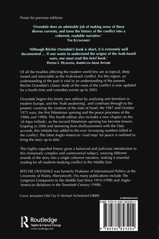 This highly-regarded history gives a balanced and judicious introduction to this immensely complex and controversial subject, weaving different strands of the story into a single coherent narrative, thus making it essential reading for all students studying conflict in the Middle East. Of all the troubles affecting the modern world few are as topical, deep rooted and intractable as the Arab-Israeli conflict. For this region, an understanding of the past is vital to an understanding of the present. Ritchie Ovendale's classic study of the roots of the conflict is now updated for a fourth time and considers events until 2003.