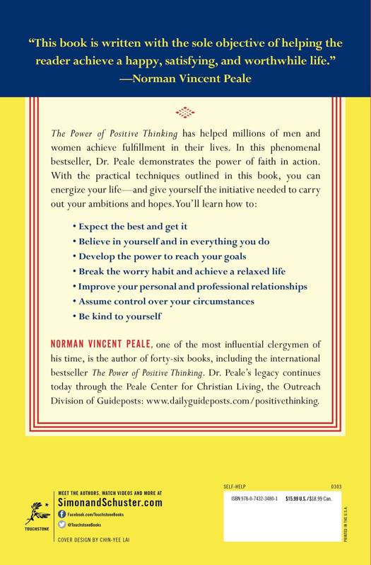 An international bestseller with over five million copies in print, The Power of Positive Thinking has helped men and women around the world to achieve fulfillment in their lives through Dr. Norman Vincent Peale's powerful message of faith and inspiration. In this phenomenal bestseller, "written with the sole objective of helping the reader achieve a happy, satisfying, and worthwhile life," Dr. Peale demonstrates the power of faith in action. With the practical techniques outlined in this book, you can energize your life--and give yourself the initiative needed to carry out your ambitions and hopes. You'll learn how to: