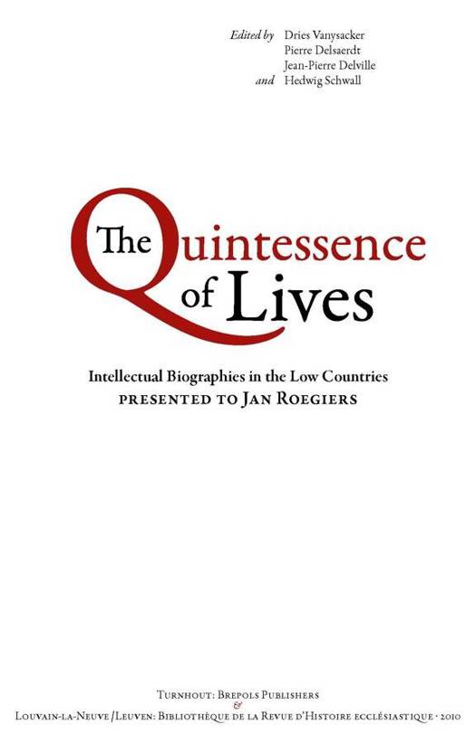 What is the essence of a life? Which elements merit selection by a biographer? Which should be discreetly left out? To what extent can an intellectual's thoughts and actions be captured in schemes and structures, without distorting or reducing the richness of a multifarious personality? These are the questions which underlie the contributions to the volumeThe Quintessence of Lives: Intellectual Biographies in the Low Countries presented to Jan Roegiers. More than twenty-five historians have written intellectual biographies of figures who created a 'second life' for themselves on paper. All persons discussed are firmly rooted in the intellectual life of the Low Countries and were active there between the sixteenth and the twentieth century. The volume is offered on the occasion of the retirement of Prof. Dr. Jan Roegiers as full professor at the K.U.Leuven. As head librarian and archivist, also in charge of the university's art collections, Jan Roegiers played a pivotal role in collecting, preserving and making available the documentary and artistic inheritance of the University of Leuven. His main interest is in the intellectual and ecclesiastical history of the Low Countries in the Modern period, but his curiosity also made him venture far beyond the boundaries of the research group in which he was active as professor ordinarius. Whatever the topic, all his texts show how much he valued the craftmanship of historiography, his great consideration for the wider context which codetermines the acts and writings of committed intellectuals, and his relish for erudition. These same features are variously reflected in the biographical contributions in this volume. They illustrate how social and cultural trends in the surrounding environment affect the actual course of action chosen by individuals who helped shape the intellectual life of our region. Academically trained lay people and clerics, as well as academics from many disciplines are to be encountered here. The authors look at how they react to the Zeitgeist, how they often go against the current and leave their mark on a whole era; or how individuals who enjoyed the same education eventually go opposite ways and proclaim conflicting views. The book will be published in the series Bibliotheque de la Revue d'histoire ecclesiastique, in recognition of the important part Jan Roegiers has played these many years as director of this international academic journal, which has recently started a formal cooperation with Brepols Publishers. The contributions, mainly in English and French, but also in German and Dutch are written by Erik Aerts, Bruno Boute, Rob Brusten and friends, Luc Courtois, Pierre Delsaerdt, Jean-Pierre Delville, Wim Francois, Willem Frijhoff, Lieve Gevers, Craig Harline, Guido Hendrix, Marion Huibrechts, Staf Janssens, Eddy Louchez, Jeroen Nilis, Ernest Persoons, Eddy Put, Toon Quaghebeur, Ludo Simons, Violet Soen, Gilbert Tournoy, Michel van Meerbeeck, Dries Vanysacker, Johan Verberckmoes, Tom Verschaffel, Dries Welkenhuyzen, and Kaat Wils.