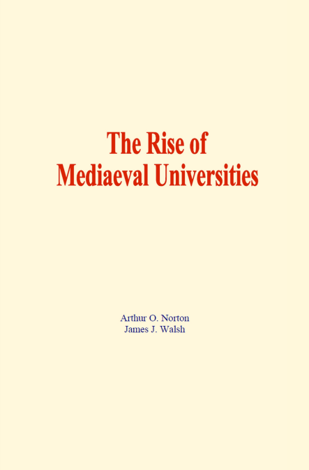 The influences contributing to the rise of universities were numerous, and in many cases obscure. The most important were: 1. Inspiring and original teachers, who gathered about them great numbers of students. 2. A new method of teaching. 3. A new group of studies. 4. Privileges granted to scholars and masters by civil and ecclesiastical authorities. 5. The direct initiative of those authorities in establishing universities by decree. This book is chosen to illustrate these influences.