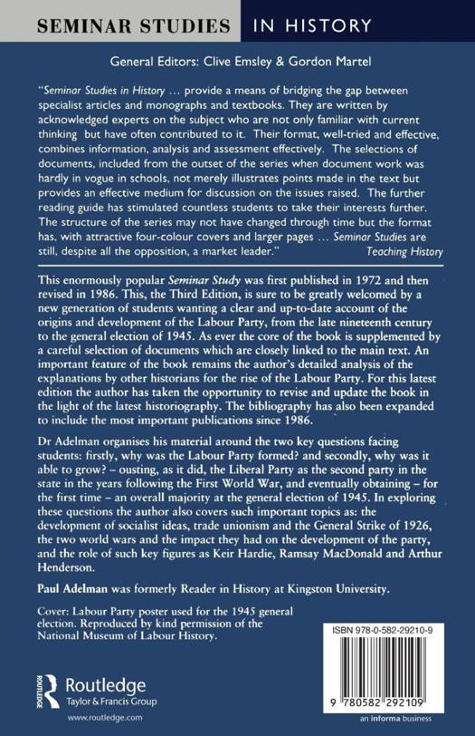 This popular study covers two major topics: the formation of the Labour Party and its emergence as the main rival to the conservatives. This transformation of the British political scene has been accounted for in a variety of ways. Dr Adelman examines these explanations and concludes that while there is a consensus about the reasons for the creation of the Labour Party there is no agreement about why it rose to such prominence.