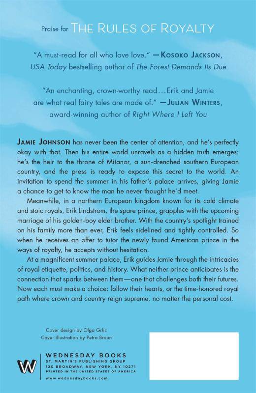 Meanwhile, in a northern European kingdom known for its cold climate and stoic royals, Erik Lindstrom, the spare prince, grapples with the upcoming marriage of his golden-boy elder brother. With the country's spotlight trained on his family more than ever, Erik feels sidelined and tightly controlled. So when he receives an offer to tutor the newly found American prince in the ways of royalty, he accepts without hesitation.