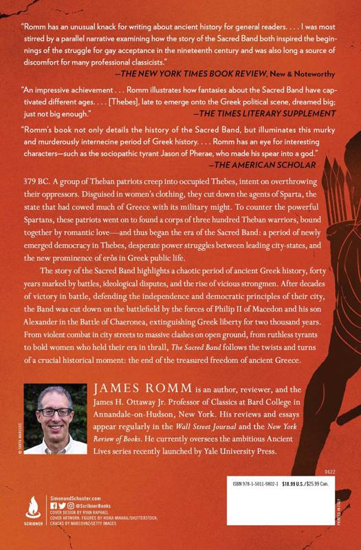 From classicist James Romm comes a "striking...fascinating" (Booklist) deep dive into the last decades of ancient Greek freedom leading up to Alexander the Great's destruction of Thebes--and the saga of the greatest military corps of the time, the Theban Sacred Band, a unit composed of 150 pairs of male lovers.The story of the Sacred Band, an elite 300-man corps recruited from pairs of lovers, highlights a chaotic era of ancient Greek history, four decades marked by battles, ideological disputes, and the rise of vicious strongmen. At stake was freedom, democracy, and the fate of Thebes, at this time the leading power of the Greek world. The tale begins in 379 BC, with a group of Theban patriots sneaking into occupied Thebes. Disguised in women's clothing, they cut down the agents of Sparta, the state that had cowed much of Greece with its military might. To counter the Spartans, this group of patriots would form the Sacred Band, a corps whose history plays out against a backdrop of Theban democracy, of desperate power struggles between leading city-states, and the new prominence of eros, sexual love, in Greek public life. After four decades without a defeat, the Sacred Band was annihilated by the forces of Philip II of Macedon and his son Alexander in the Battle of Chaeronea--extinguishing Greek liberty for two thousand years. Buried on the battlefield where they fell, they were rediscovered in 1880--some skeletons still in pairs, with arms linked together. From violent combat in city streets to massive clashes on open ground, from ruthless tyrants to bold women who held their era in thrall, The Sacred Band recounts "in fluent, accessible prose" (The Wall Street Journal) the twists and turns of a crucial historical moment: the end of the treasured freedom of ancient Greece.