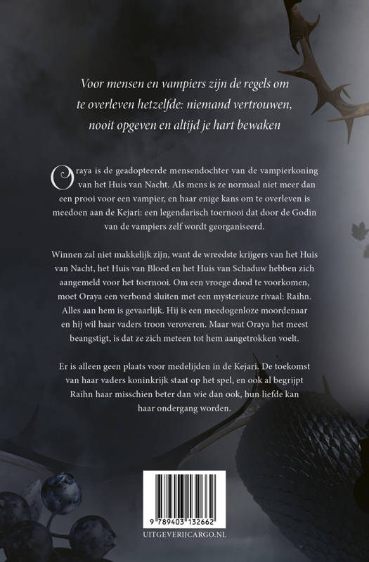 Oraya is de geadopteerde mensendochter van de vampierkoning van het Huis van Nacht. Als mens is ze normaal niet meer dan een prooi voor een vampier, en haar enige kans om te overleven is meedoen aan de Kejari: een legendarisch toernooi dat door de Godin van de vampiers zelf wordt georganiseerd.