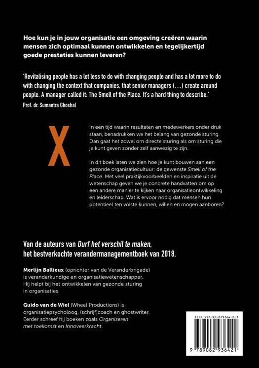 In dit boek laten we zien hoe je kunt bouwen aan een gezonde organisatiecultuur: de gewenste Smell of the Place. Met veel praktijkvoorbeelden en inspiratie uit de wetenschap geven we je concrete handvatten voor een andere kijk op organisatieontwikkeling en leiderschap. Wat is ervoor nodig dat mensen hun potentieel ten volste kunnen, willen en mogen aanboren?