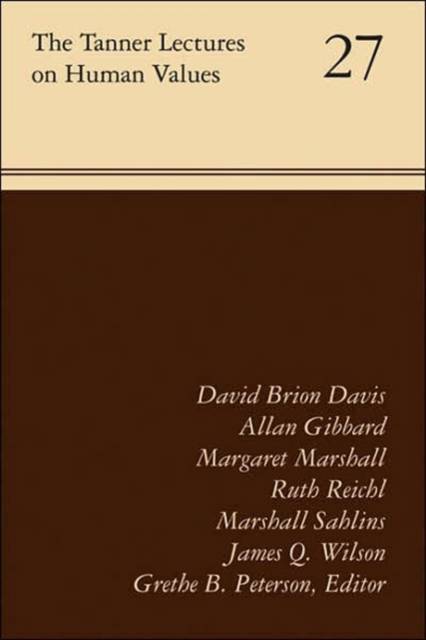 The Tanner Lectures on Human Values, founded July 1, 1978, at Clare Hall, Cambridge University, was established by the American scholar, industrialist, and philanthropist Obert Clark Tanner. Lectureships are awarded to outstanding scholars or leaders in broadly defined fields of human values, and transcend ethnic, national, religious, or ideological distinctions. Volume 27 features lectures given by Ruth Reichl, James Q. Wilson, Marshall Sahlins, David Brion Davis, Allan Gibbard, and Margaret H. Marshall.