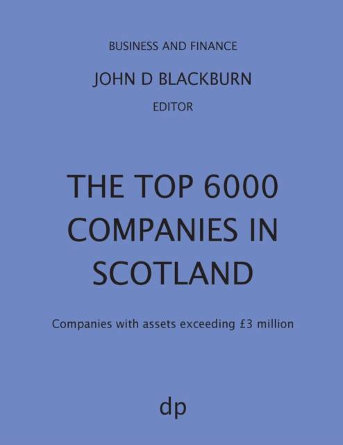 The aim of this study is to provide an overview of the key movers and shakers in the Scottish corporate sector. Only key data has been isolated, particularly the company's net worth and total assets, but also their full name, date incorporated, registered office, activities, shareholders, directors (with date of birth, nationality and occupation) and number of employees (where available).