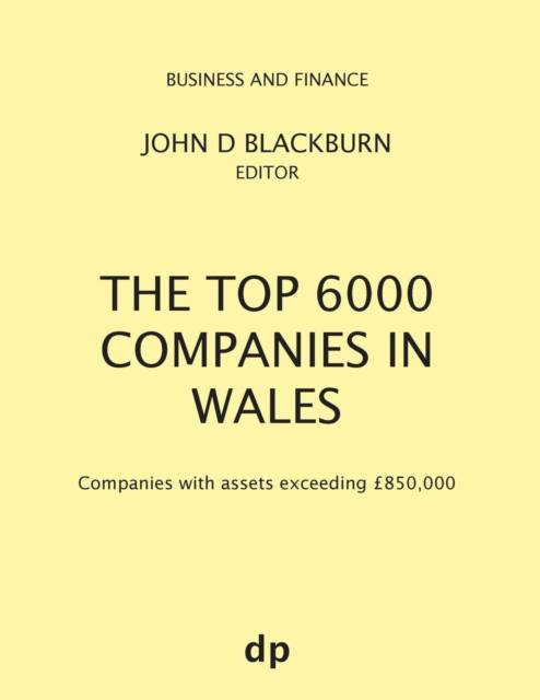 The aim of this study is to provide an overview of the key movers and shakers in the Welsh corporate sector. Only key data has been isolated, particularly the company's net worth and total assets, but also their full name, date incorporated, registered office, activities, shareholders, directors (with date of birth, occupation and nationality) and number of employees.