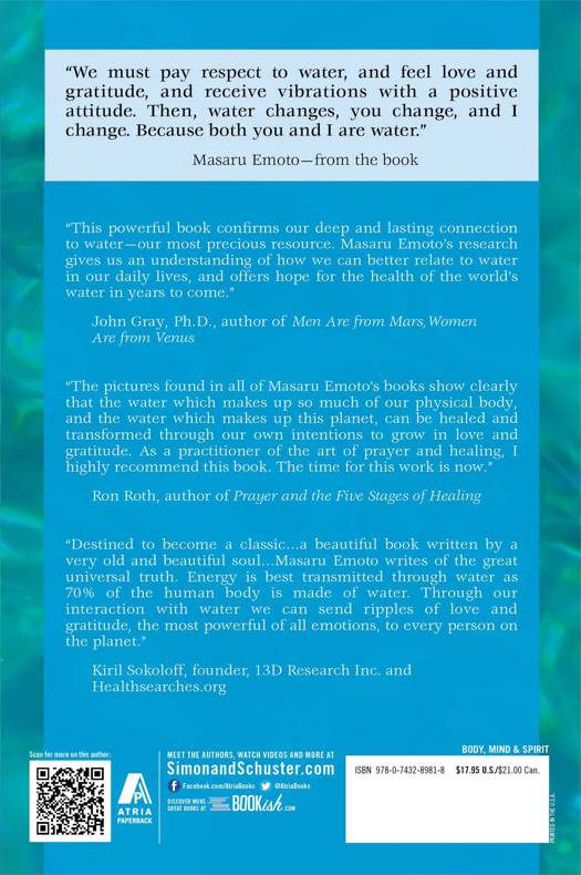 In this book you will learn of the unique properties of water and its ability to improve your health and your life. You will see the effect each of us has on water -- not only the water we drink but also the water that makes up 70 percent of the human body and, most importantly, what happens to that water as we interact with each other.