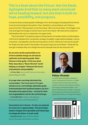 'As we zoom up the exponential curve of tech-enabled change we all need an optimistic and inspiring guide. Peter Hinssen is that guide. In this new book, Peter describes a "Never Normal world" helping us navigate "between the forces of pessimism and possibility." - Dr Peter Weill, Chairman MIT Center for Information Systems Research (CISR) 'In an age when warnings dominate the conversation, The Uncertainty Principle stands out as a refreshingly optimistic guide. It demonstrates how business leaders can turn disruption into opportunity - not just for their own organizations, but for the world at large.' - Costas Markides, Professor of Strategy and Entrepreneurship at London Business School 'Uncertainty isn't a threat - it's the raw material for tomorrow's opportunities. This book helps leaders imagine the impossible and install hope to change the future. A must-read!' - David De Cremer, Dean of D'Amore-McKim School of Business at Northeastern University