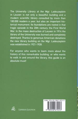The University Library at the Mgr. Ladeuzeplein in Leuven is not only a beautiful building and a modern scientific library consulted by more than 100,000 readers a year but also an important historical monument. Its foundations are rooted in World War I. In the mass destruction of Leuven in 1914 the library of the University was burned and completely destroyed. Thanks to generous American donations the new library building on the Mgr. Ladeuzeplein was established in 1921. For anyone who wants to learn more about the history of this remarkable building, or who wants to walk in and around the library, this guide is an absolute must!