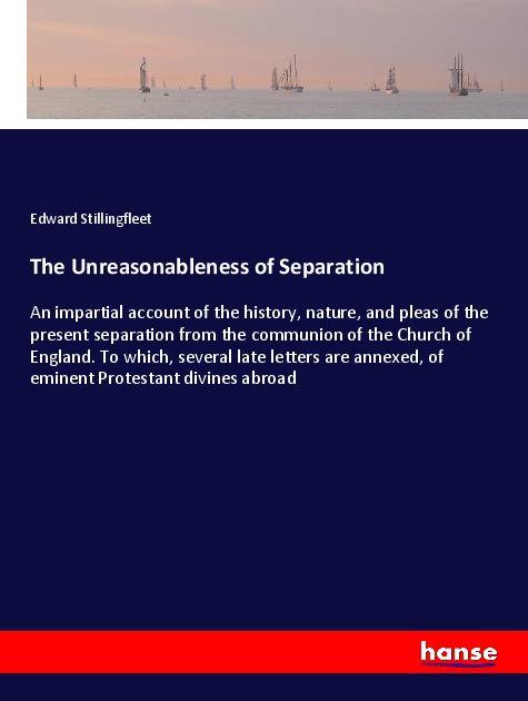 The Unreasonableness of Separation - An impartial account of the history, nature, and pleas of the present separation from the communion of the Church of England. To which, several late letters are annexed, of eminent Protestant divines abroad is an unchanged, high-quality reprint of the original edition of 1681. Hansebooks is editor of the literature on different topic areas such as research and science, travel and expeditions, cooking and nutrition, medicine, and other genres. As a publisher we focus on the preservation of historical literature. Many works of historical writers and scientists are available today as antiques only. Hansebooks newly publishes these books and contributes to the preservation of literature which has become rare and historical knowledge for the future.
