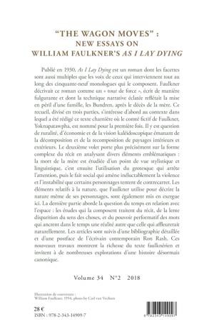 Publié en 1930, As I Lay Dying est un roman dont les facettes sont aussi multiples que les voix de ceux qui interviennent tout au long des cinquante-neuf monologues qui le composent. Faulkner décrivait ce roman comme un « tour de force », écrit de manière fulgurante et dont la technique narrative éclatée reflétait la mise en péril d'une famille, après le décès de la mère. Ces contributions montrent la richesse du texte Faulknérien et invitent à de nombreuses explorations d'une histoire désormais canonique.