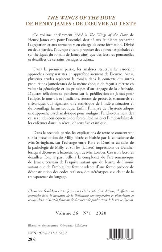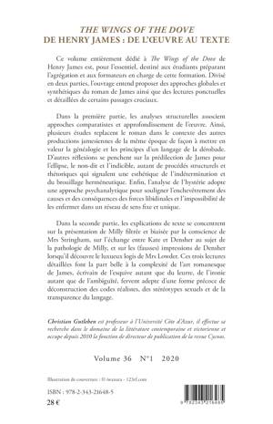 Ce volume entièrement dédié à The Wings of the Dove de Henry James est, pour l'essentiel, destiné aux étudiants préparant l'agrégation et aux formateurs en charge de cette formation. Divisé en deux parties, l'ouvrage entend proposer des approches globales et synthétiques du roman de James ainsi que des lectures ponctuelles et détaillées de certains passages cruciaux.