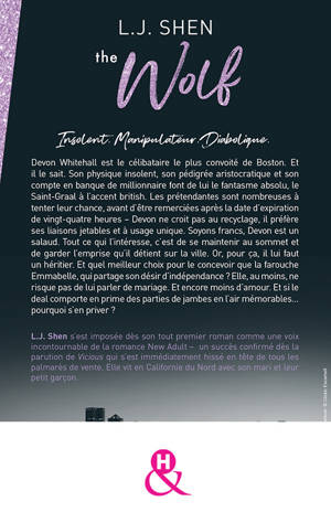 A propos de l'autrice L. J. Shen s’est imposée dès son tout premier roman comme une voix incontournable de la romance New Adult – un succès confirmé dès la parution de Vicious qui s’est immédiatement hissé en tête de tous les palmarès de vente. Elle vit en Californie du Nord avec son mari et leur petit garçon.