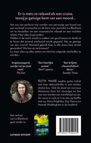 Het zou een perfecte trip worden: een persreisje aan boord van een exclusief cruiseschip en de kans voor journalist Lo Blacklock om te herstellen van een traumatische inbraak en een mislukte relatie. Maar alles loopt anders.