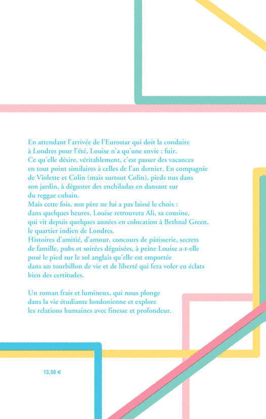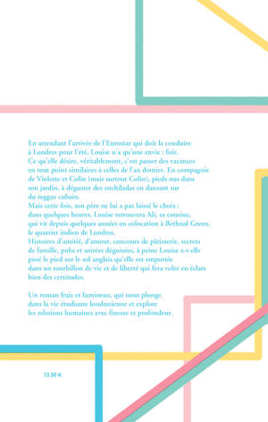 Louise va passer deux mois à Londres, chez sa cousine Ali qu'elle n'a pas vue depuis des années. Histoires d'amitié, d'amour, concours de pâtisserie, tatouages au henné, soirées déguisées et secrets de famille se mêlent à merveille dans cette colocation londonienne. Une parenthèse estivale réconfortante et lumineuse où Séraphine Menu explore les relations humaines avec sincérité et bienveillance .