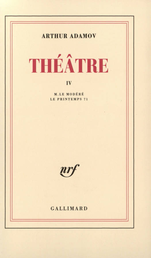 Dans Le Printemps 71, Arthur Adamov aborde de front un événement réel, la Commune de Paris. S'agit-il pour autant d'un drame historique ? Non, si l'on entend par là un affrontement de grands personnages, une série de dialogues sur le destin du monde : les hommes, les femmes et les enfants mis en scène dans Le Printemps 71 ne sont pas des héros, mais les acteurs obscurs d'un drame qui n'a pas eu, et pour cause, sa vraie place dans l'histoire de France, au moins officielle. Oui, si le vrai sujet d'un drame historique est l'évolution des consciences individuelles par rapport au déroulement des événements : le retard ou l'avance des hommes sur les faits. En revanche, M. le Modéré n'est qu'une clownerie dans laquelle les événements sont aussi peu historiques que n'est polonaise la Pologne d'Ubu. Ici, celui qui mène le jeu nous propose le redoutable exemple d'une modération qui risque de conduire aux pires excès. Le Printemps 71 a été créé le 26 avril 1963 au Théâtre Gérard-Philipe.