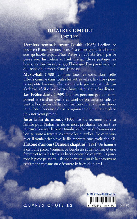 Derniers remords avant l'oubli[1987] L’action se passe en France, de nos jours, à la campagne, dans la maison qu’habite aujourd’hui Pierre et qu’habitèrent par le passé avec lui Hélène et Paul. Il s’agit de se partager les biens, comme on se partage l’héritage d’un passé mort, ce qui reste de l’utopie d’une jeunesse.