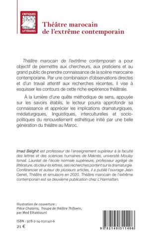Théâtre marocain de l'extrême contemporain a pour objectif de permettre aux chercheurs, aux praticiens et au grand public de prendre connaissance de la scène marocaine contemporaine. Par une combinaison d'observations directes et d'un travail attentif aux recherches récentes, il vise à esquisser les contours de cette riche expérience théâtrale. À la lumière d'une quête méthodique de sens, appuyée sur les savoirs établis, le lecteur pourra approfondir sa connaissance et apprécier les implications dramaturgiques, médiaturgiques, linguistiques, interculturelles et socio-politiques du renouvellement esthétique initié par une belle génération du théâtre au Maroc.