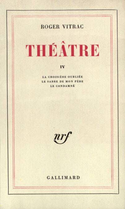Ce volume, le dernier de l'œuvre théâtrale de l'auteur de Victor qui connut sur la scène un succès éclatant, comprend trois texte : La Croisière oubliée, pièce radiophonique, Le Sabre de mon père, comédie en trois actes créée en 1951 au Théâtre de Paris, et Le Condamné, comédie. L'école surréaliste à laquelle appartient Roger Vitrac l'a doté d'une plume à la fois magique et concrète : il s'en sert aussi bien pour écrire une fable mousseuse et pétillante que pour construire un vaudeville où les situation psychologiques, les rebondissements d'action, les silences eux-mêmes sont conduits d'une manière naturellement lumineuse et cruelle, animés par un esprit où le partage de la poésie, de la gravité et du rire sont maintenus d'un bout à l'autre dans un équilibre parfait.