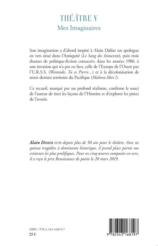 Son imagination a d'abord inspiré à Alain Didier un apologue en vers situé dans l'Antiquité (Le Sang des Innocents), puis trois drames de politique-fiction consacrés, dans les années 1980, à une invasion qui n'a pas eu lieu, celle de l'Europe de l'Ouest par l'U.R.S.S. (Westende, Tu es Pierre ) et à la décolonisation de notre dernier territoire du Pacifique (Mahora libre !).
